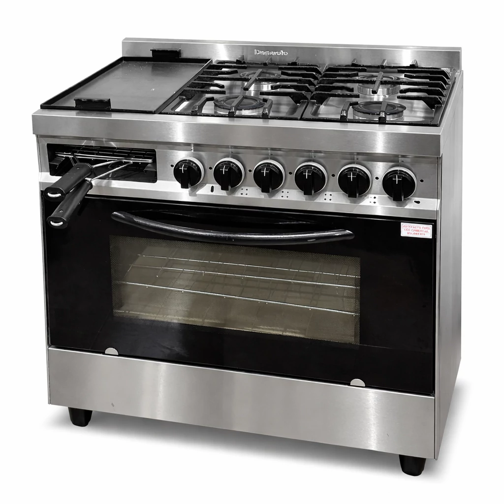Cocina Industrial 4 Hornallas Con Plancha y Carlitera Depaolo Delicia Acero Horno Con Visor