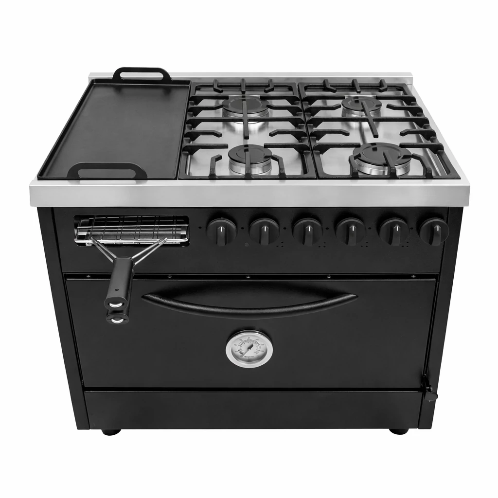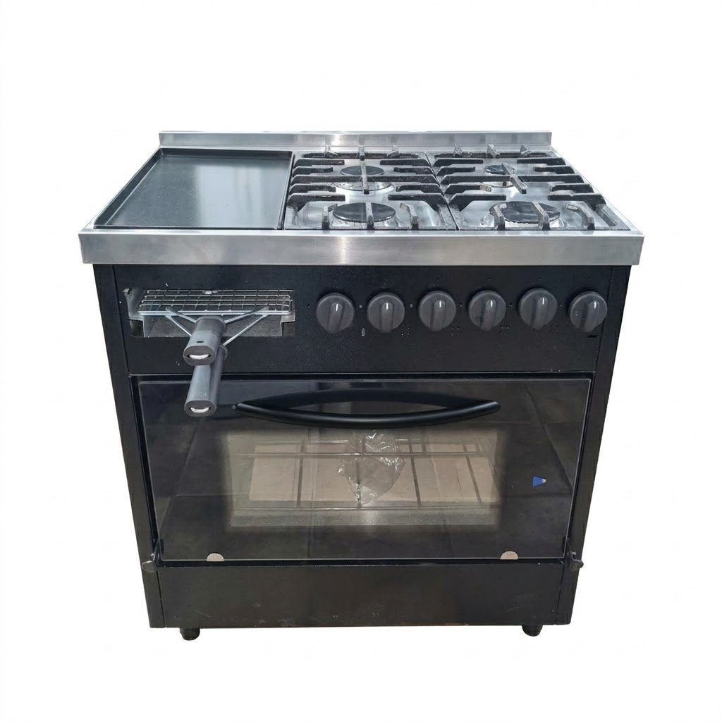 Cocina Industrial 4 Hornallas Con Plancha y Carlitera Gastrolibertad Negra Horno Con Visor