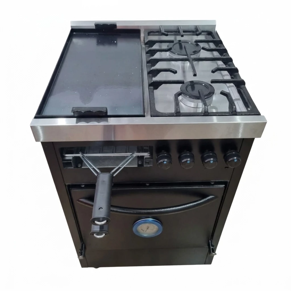 Cocina Industrial 2 Hornallas Con Plancha y Carlitera Gastrolibertad Negra Horno Ciego