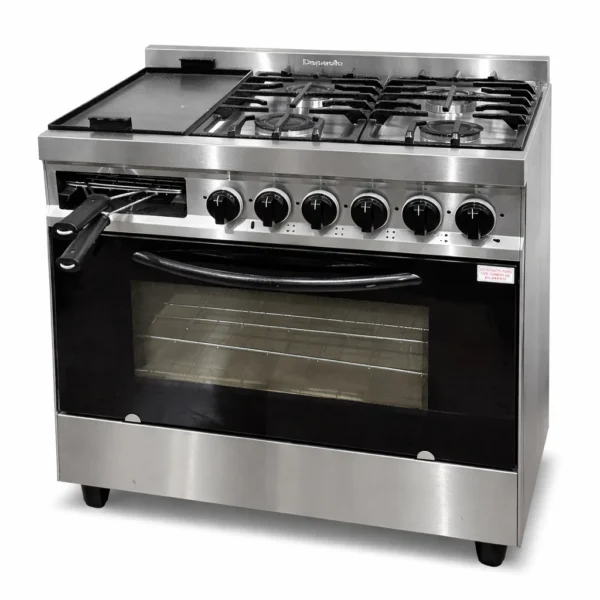 Cocina de 4 hornallas con plancha y carlitera tipo industrial diseñada para quienes buscan potencia, versatilidad y resistencia en la cocina diaria. Su estructura robusta y sus rejas de fundición pesada brindan gran estabilidad para ollas y sartenes, permitiendo una cocción segura y uniforme incluso en preparaciones exigentes.